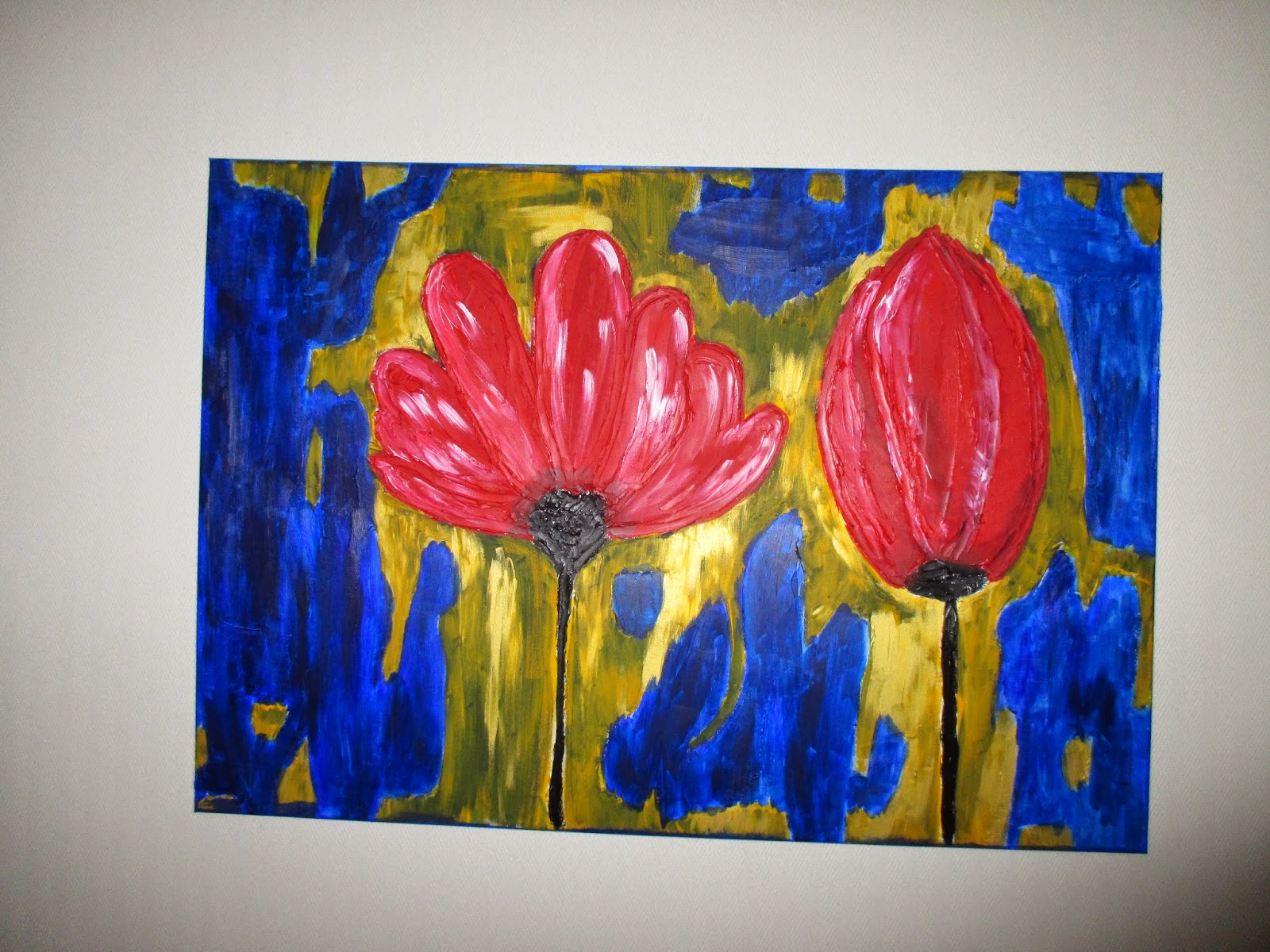 E foi assim que ficou o meu último grande projeto cá para casa! Uma tela bem colorida para animar a parede da cabeceira da cama...tela em acrílico com bastante relevo!Duas manhãs de trabalho que resultaram assim...